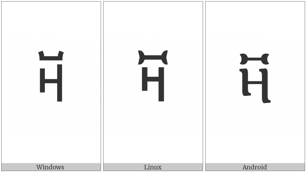 The image below shows how the “Ethiopic Syllable Dzaa” symbol might look like on different operating systems. If the font in which this web site is displayed does not contain the symbol and there is no fallback font able to render it, you can use the image below to get an idea of what it should look like.