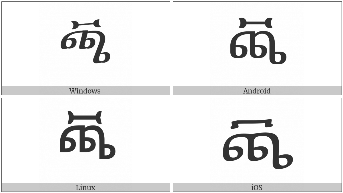 The image below shows how the “Ethiopic Syllable Cchhaa” symbol might look like on different operating systems. If the font in which this web site is displayed does not contain the symbol and there is no fallback font able to render it, you can use the image below to get an idea of what it should look like.