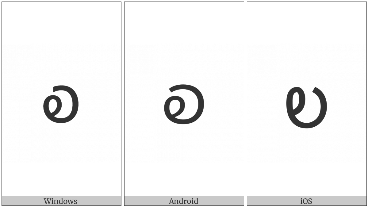 The image below shows how the “Cherokee Small Letter Ka” symbol might look like on different operating systems. If the font in which this web site is displayed does not contain the symbol and there is no fallback font able to render it, you can use the image below to get an idea of what it should look like.