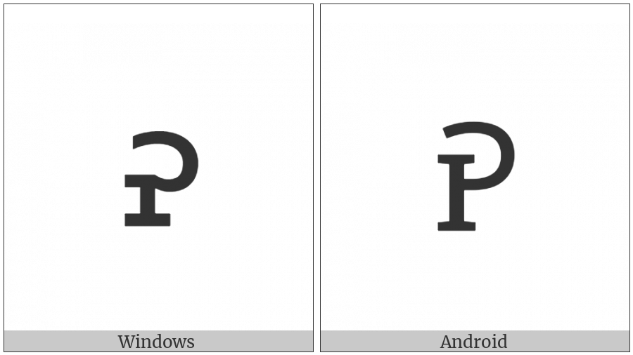 The image below shows how the “Cherokee Small Letter He” symbol might look like on different operating systems. If the font in which this web site is displayed does not contain the symbol and there is no fallback font able to render it, you can use the image below to get an idea of what it should look like.