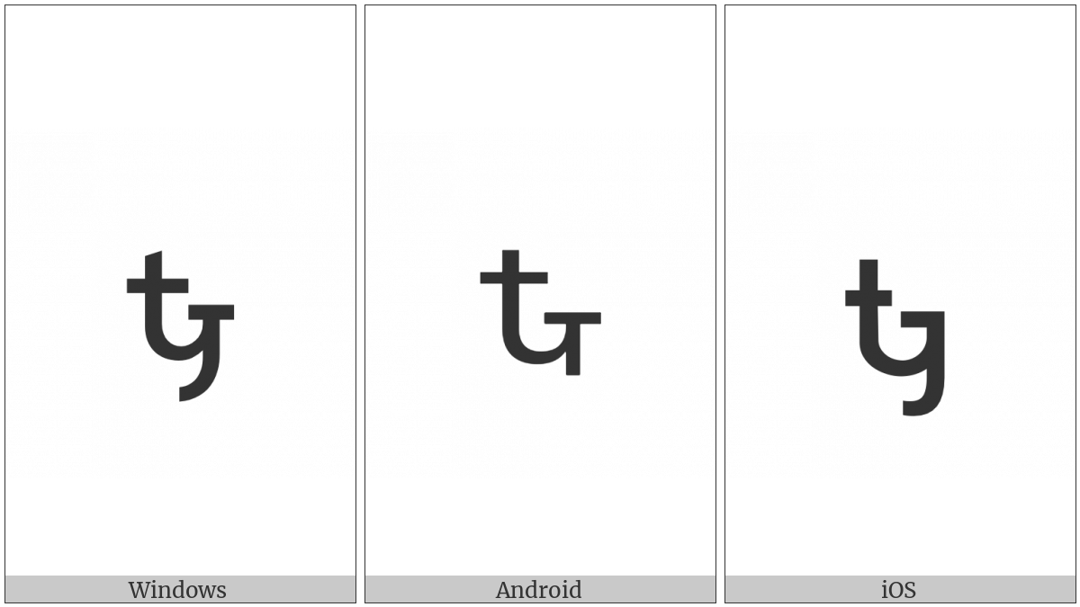 The image below shows how the “Cherokee Small Letter Hna” symbol might look like on different operating systems. If the font in which this web site is displayed does not contain the symbol and there is no fallback font able to render it, you can use the image below to get an idea of what it should look like.