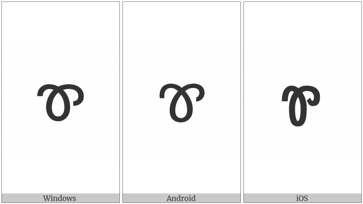 The image below shows how the “Cherokee Small Letter Qui” symbol might look like on different operating systems. If the font in which this web site is displayed does not contain the symbol and there is no fallback font able to render it, you can use the image below to get an idea of what it should look like.