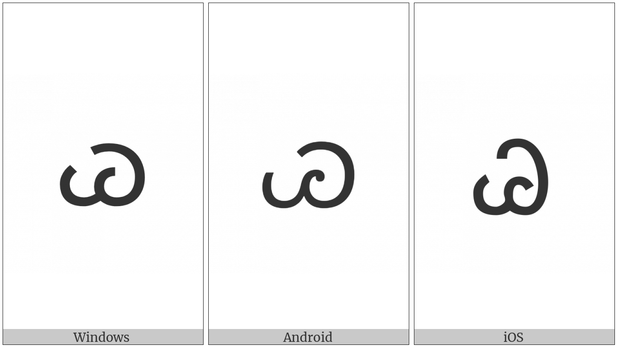 The image below shows how the “Cherokee Small Letter Quu” symbol might look like on different operating systems. If the font in which this web site is displayed does not contain the symbol and there is no fallback font able to render it, you can use the image below to get an idea of what it should look like.
