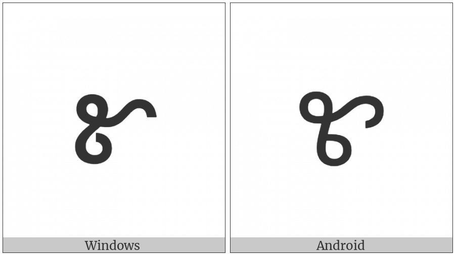 The image below shows how the “Cherokee Small Letter Su” symbol might look like on different operating systems. If the font in which this web site is displayed does not contain the symbol and there is no fallback font able to render it, you can use the image below to get an idea of what it should look like.