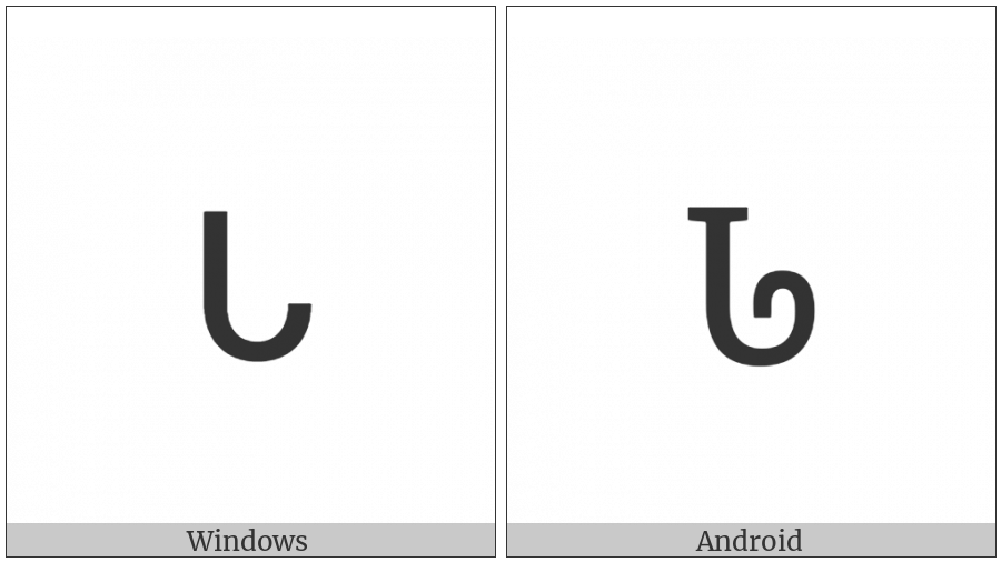 The image below shows how the “Cherokee Small Letter Da” symbol might look like on different operating systems. If the font in which this web site is displayed does not contain the symbol and there is no fallback font able to render it, you can use the image below to get an idea of what it should look like.
