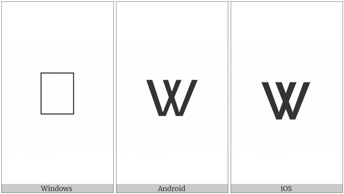 The image below shows how the “Cherokee Small Letter Ta” symbol might look like on different operating systems. If the font in which this web site is displayed does not contain the symbol and there is no fallback font able to render it, you can use the image below to get an idea of what it should look like.