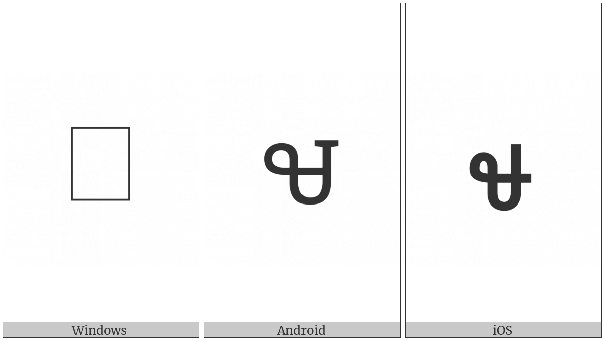 The image below shows how the “Cherokee Small Letter Tlo” symbol might look like on different operating systems. If the font in which this web site is displayed does not contain the symbol and there is no fallback font able to render it, you can use the image below to get an idea of what it should look like.