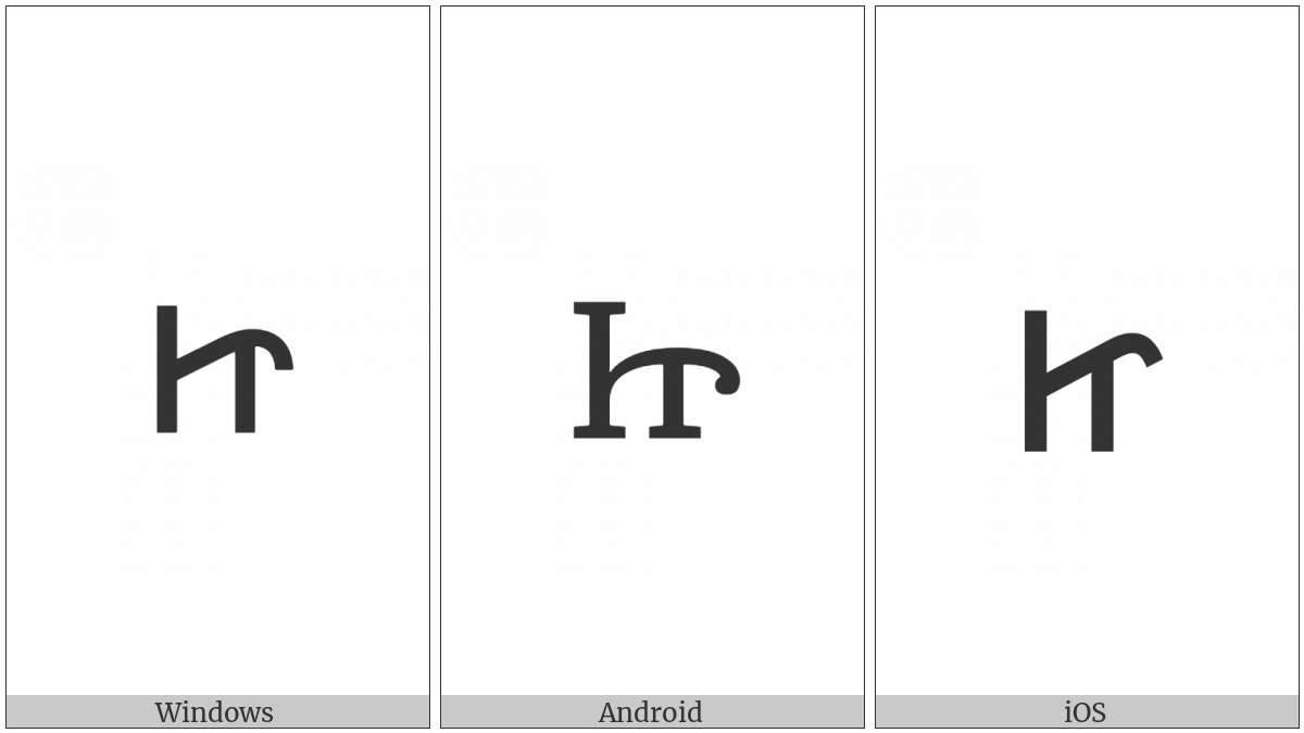The image below shows how the “Cherokee Small Letter Tsi” symbol might look like on different operating systems. If the font in which this web site is displayed does not contain the symbol and there is no fallback font able to render it, you can use the image below to get an idea of what it should look like.