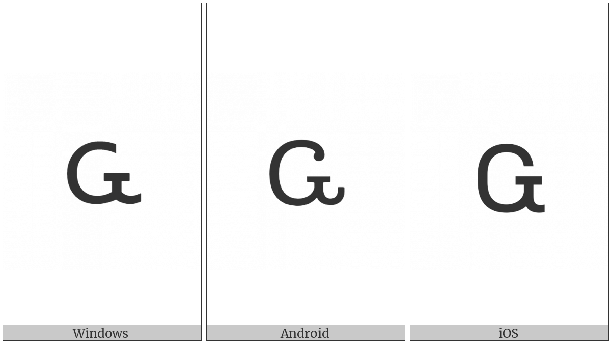 The image below shows how the “Cherokee Small Letter Wa” symbol might look like on different operating systems. If the font in which this web site is displayed does not contain the symbol and there is no fallback font able to render it, you can use the image below to get an idea of what it should look like.