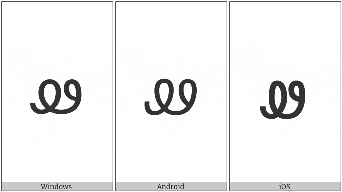 The image below shows how the “Cherokee Small Letter We” symbol might look like on different operating systems. If the font in which this web site is displayed does not contain the symbol and there is no fallback font able to render it, you can use the image below to get an idea of what it should look like.