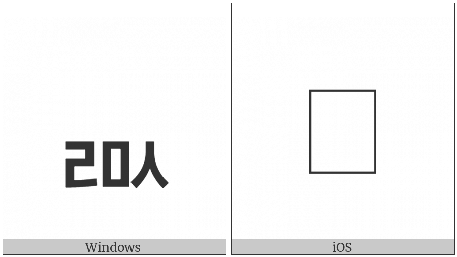 The image below shows how the “Hangul Jongseong Rieul-Mieum-Sios” symbol might look like on different operating systems. If the font in which this web site is displayed does not contain the symbol and there is no fallback font able to render it, you can use the image below to get an idea of what it should look like.