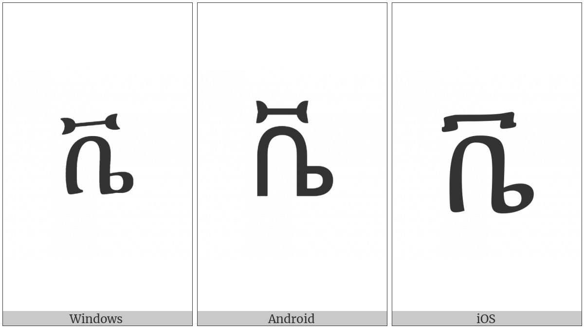 The image below shows how the “Ethiopic Syllable Vee” symbol might look like on different operating systems. If the font in which this web site is displayed does not contain the symbol and there is no fallback font able to render it, you can use the image below to get an idea of what it should look like.