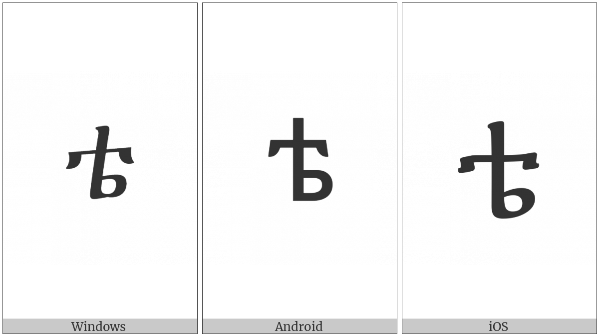 The image below shows how the “Ethiopic Syllable Tee” symbol might look like on different operating systems. If the font in which this web site is displayed does not contain the symbol and there is no fallback font able to render it, you can use the image below to get an idea of what it should look like.