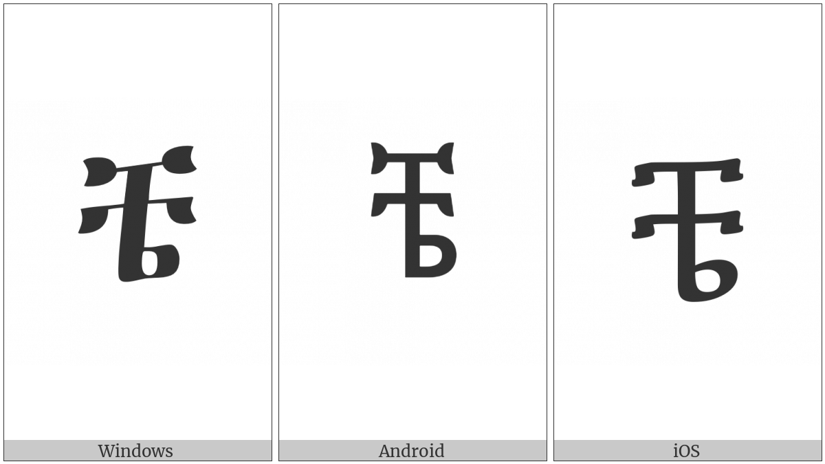 The image below shows how the “Ethiopic Syllable Cee” symbol might look like on different operating systems. If the font in which this web site is displayed does not contain the symbol and there is no fallback font able to render it, you can use the image below to get an idea of what it should look like.