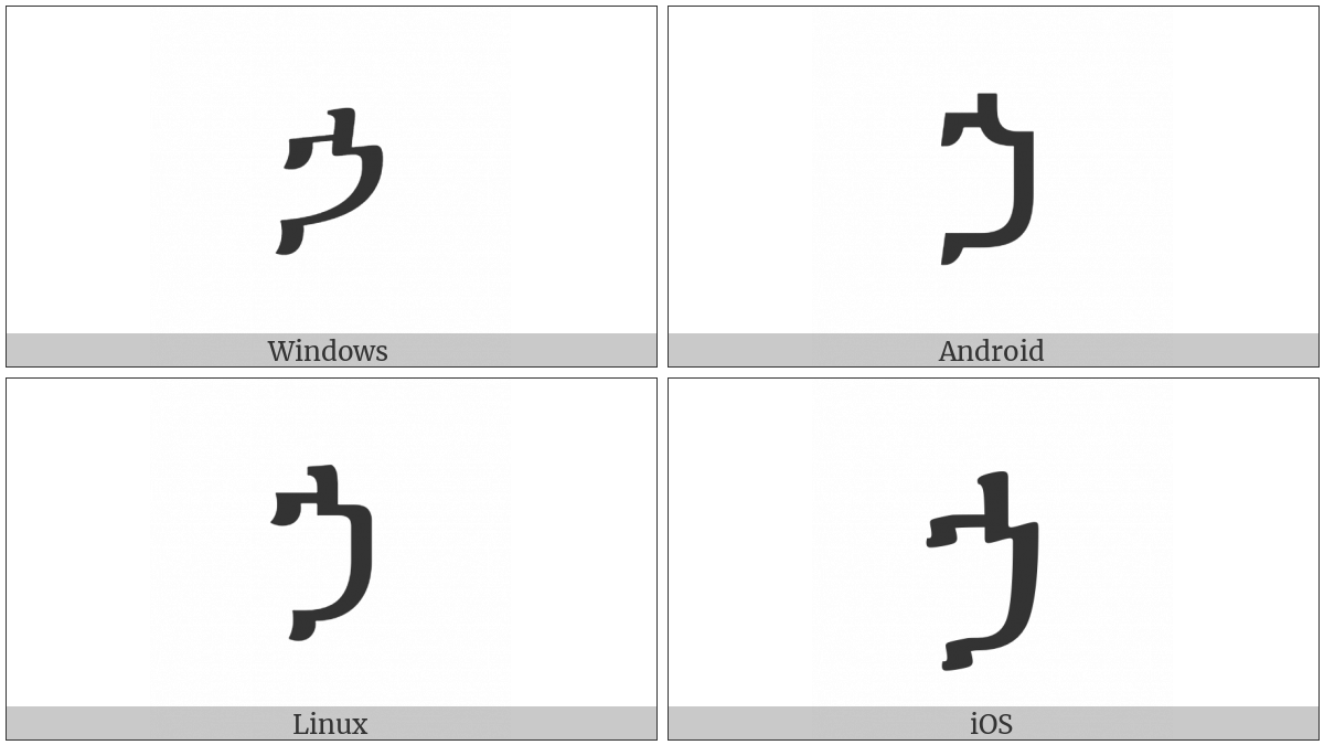 The image below shows how the “Ethiopic Syllable Xaa” symbol might look like on different operating systems. If the font in which this web site is displayed does not contain the symbol and there is no fallback font able to render it, you can use the image below to get an idea of what it should look like.