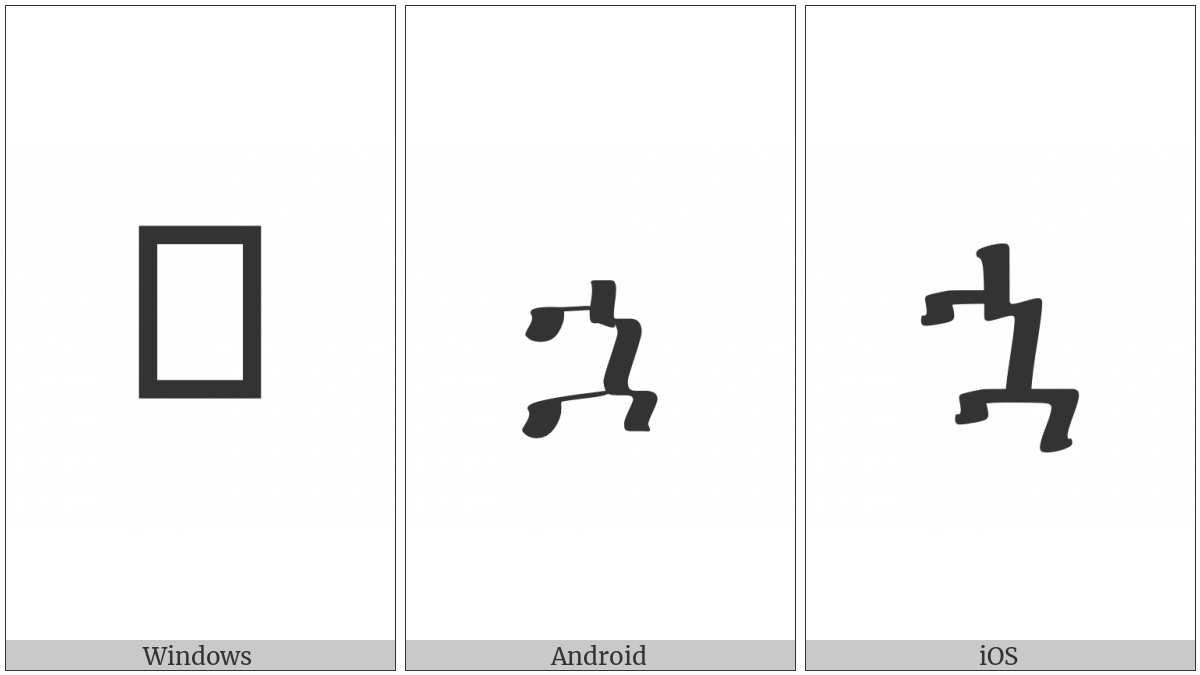 The image below shows how the “Ethiopic Syllable Xwaa” symbol might look like on different operating systems. If the font in which this web site is displayed does not contain the symbol and there is no fallback font able to render it, you can use the image below to get an idea of what it should look like.