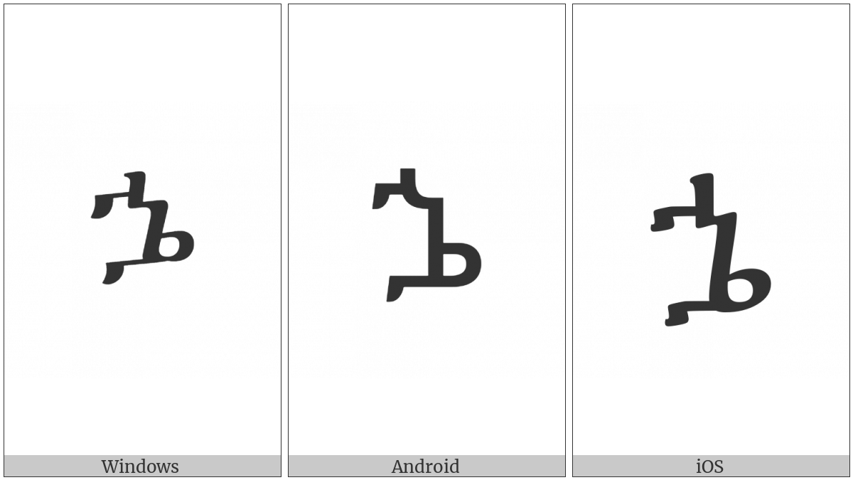 The image below shows how the “Ethiopic Syllable Xwee” symbol might look like on different operating systems. If the font in which this web site is displayed does not contain the symbol and there is no fallback font able to render it, you can use the image below to get an idea of what it should look like.