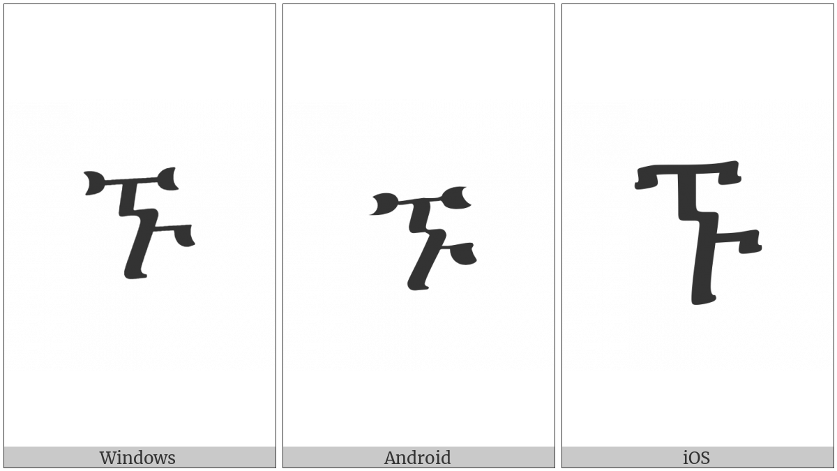 The image below shows how the “Ethiopic Syllable Nyu” symbol might look like on different operating systems. If the font in which this web site is displayed does not contain the symbol and there is no fallback font able to render it, you can use the image below to get an idea of what it should look like.