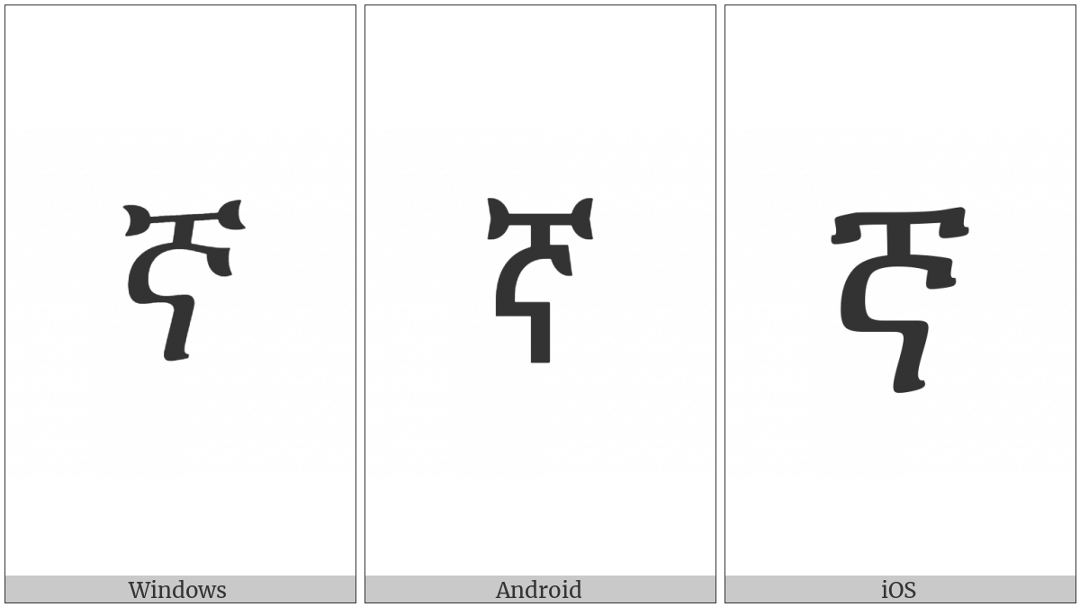 The image below shows how the “Ethiopic Syllable Nyaa” symbol might look like on different operating systems. If the font in which this web site is displayed does not contain the symbol and there is no fallback font able to render it, you can use the image below to get an idea of what it should look like.