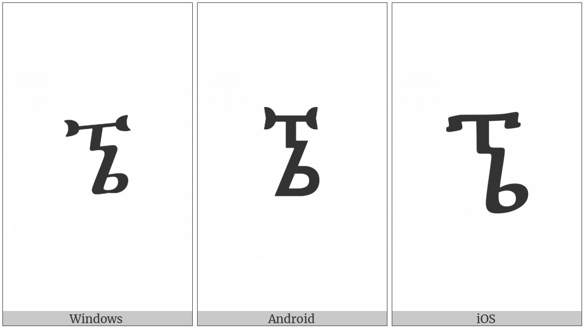 The image below shows how the “Ethiopic Syllable Nyee” symbol might look like on different operating systems. If the font in which this web site is displayed does not contain the symbol and there is no fallback font able to render it, you can use the image below to get an idea of what it should look like.
