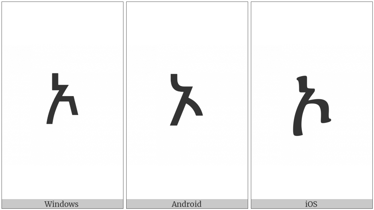 The image below shows how the “Ethiopic Syllable Glottal O” symbol might look like on different operating systems. If the font in which this web site is displayed does not contain the symbol and there is no fallback font able to render it, you can use the image below to get an idea of what it should look like.