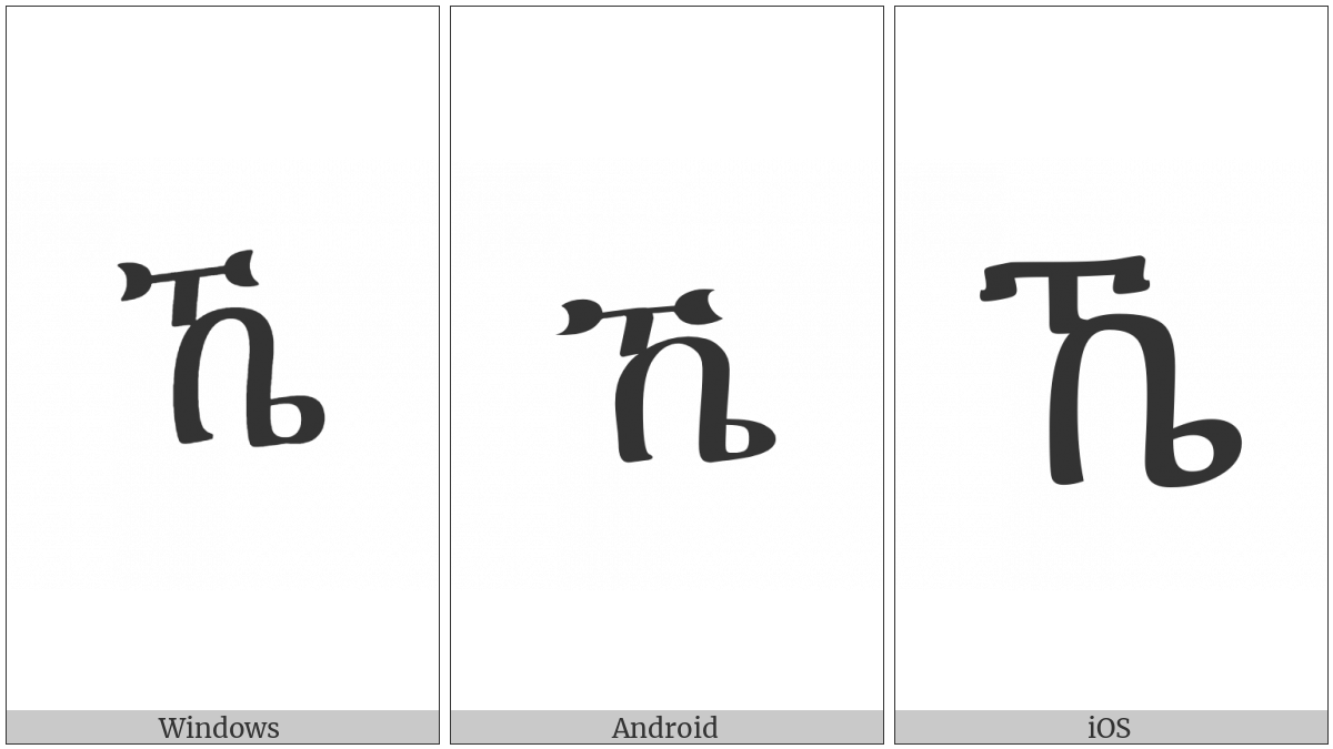 The image below shows how the “Ethiopic Syllable Kxee” symbol might look like on different operating systems. If the font in which this web site is displayed does not contain the symbol and there is no fallback font able to render it, you can use the image below to get an idea of what it should look like.