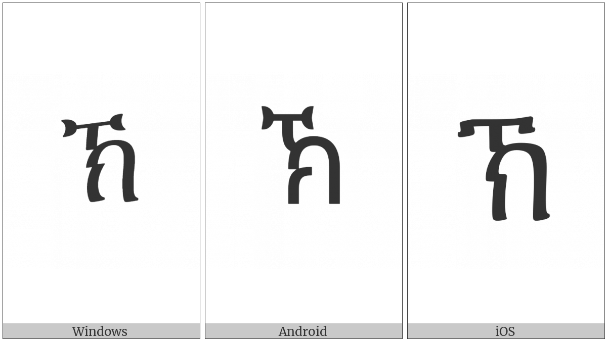 The image below shows how the “Ethiopic Syllable Kxe” symbol might look like on different operating systems. If the font in which this web site is displayed does not contain the symbol and there is no fallback font able to render it, you can use the image below to get an idea of what it should look like.