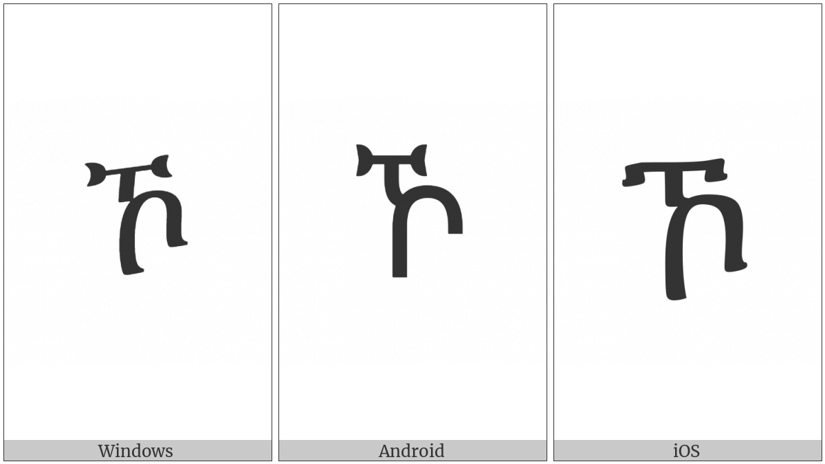 The image below shows how the “Ethiopic Syllable Kxo” symbol might look like on different operating systems. If the font in which this web site is displayed does not contain the symbol and there is no fallback font able to render it, you can use the image below to get an idea of what it should look like.