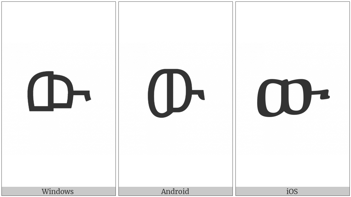 The image below shows how the “Ethiopic Syllable We” symbol might look like on different operating systems. If the font in which this web site is displayed does not contain the symbol and there is no fallback font able to render it, you can use the image below to get an idea of what it should look like.