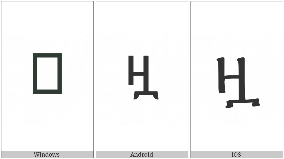 The image below shows how the “Ethiopic Syllable Zwa” symbol might look like on different operating systems. If the font in which this web site is displayed does not contain the symbol and there is no fallback font able to render it, you can use the image below to get an idea of what it should look like.