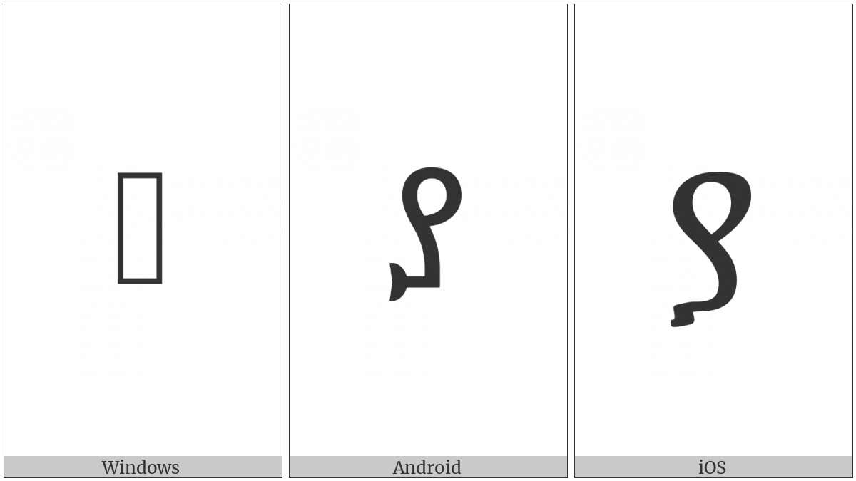 The image below shows how the “Ethiopic Syllable Yaa” symbol might look like on different operating systems. If the font in which this web site is displayed does not contain the symbol and there is no fallback font able to render it, you can use the image below to get an idea of what it should look like.