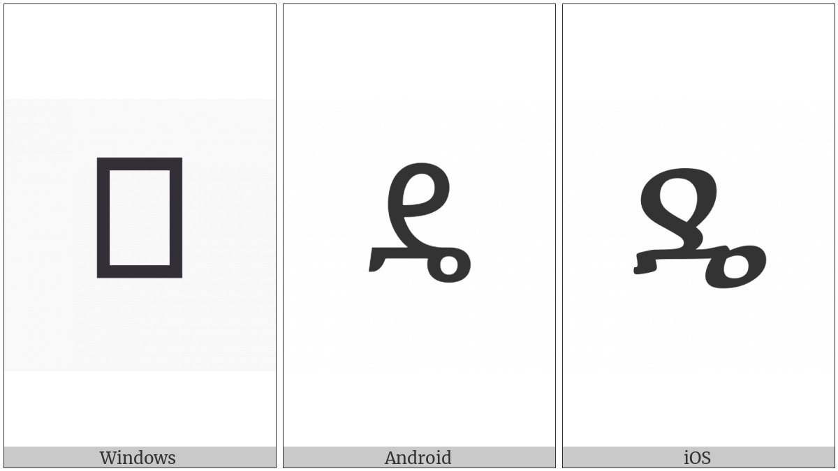 The image below shows how the “Ethiopic Syllable Dee” symbol might look like on different operating systems. If the font in which this web site is displayed does not contain the symbol and there is no fallback font able to render it, you can use the image below to get an idea of what it should look like.