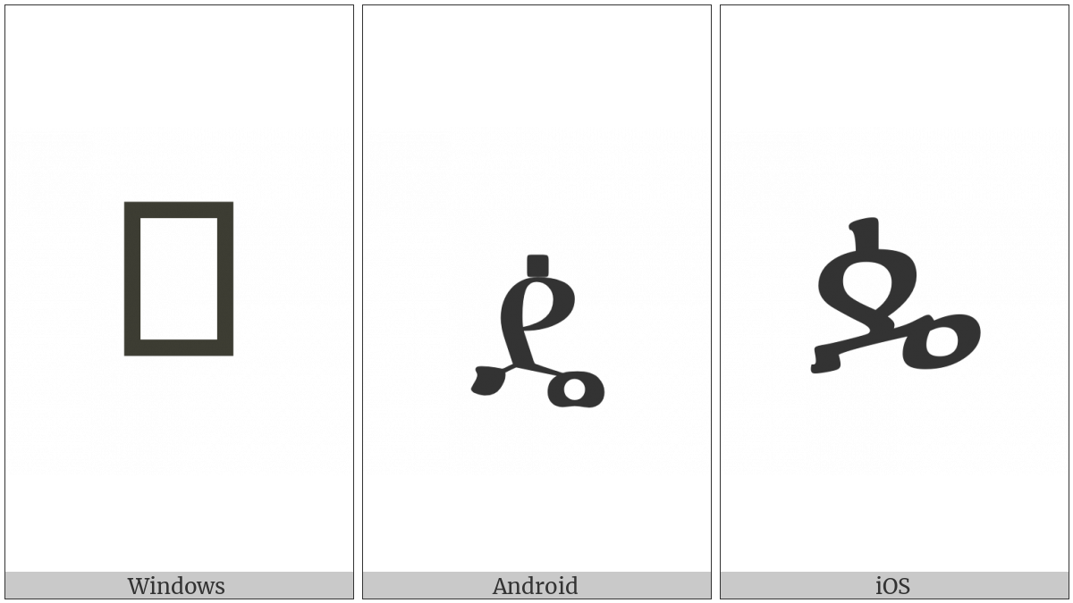 The image below shows how the “Ethiopic Syllable Ddee” symbol might look like on different operating systems. If the font in which this web site is displayed does not contain the symbol and there is no fallback font able to render it, you can use the image below to get an idea of what it should look like.