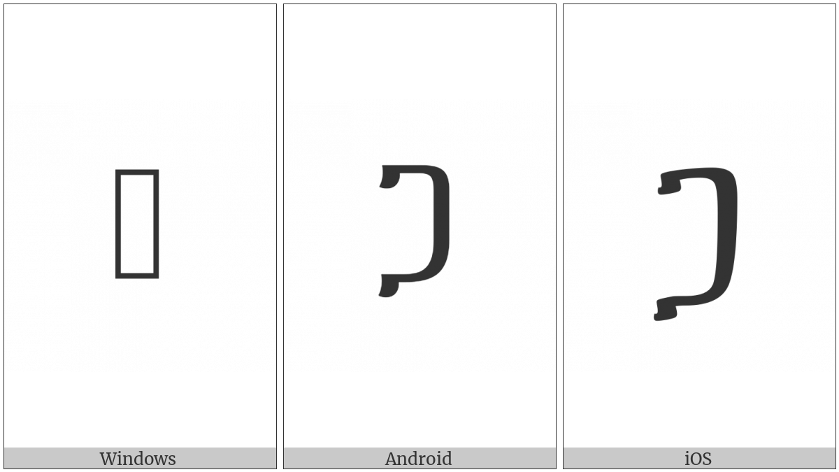 The image below shows how the “Ethiopic Syllable Gaa” symbol might look like on different operating systems. If the font in which this web site is displayed does not contain the symbol and there is no fallback font able to render it, you can use the image below to get an idea of what it should look like.