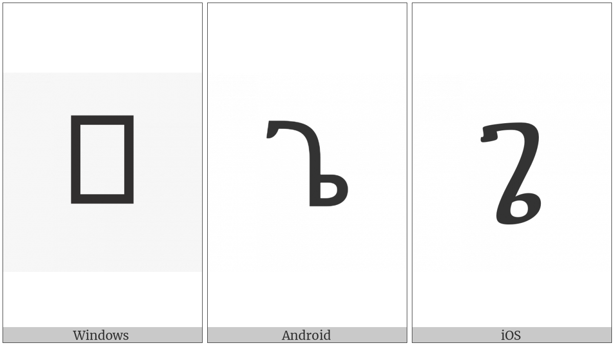 The image below shows how the “Ethiopic Syllable Gee” symbol might look like on different operating systems. If the font in which this web site is displayed does not contain the symbol and there is no fallback font able to render it, you can use the image below to get an idea of what it should look like.