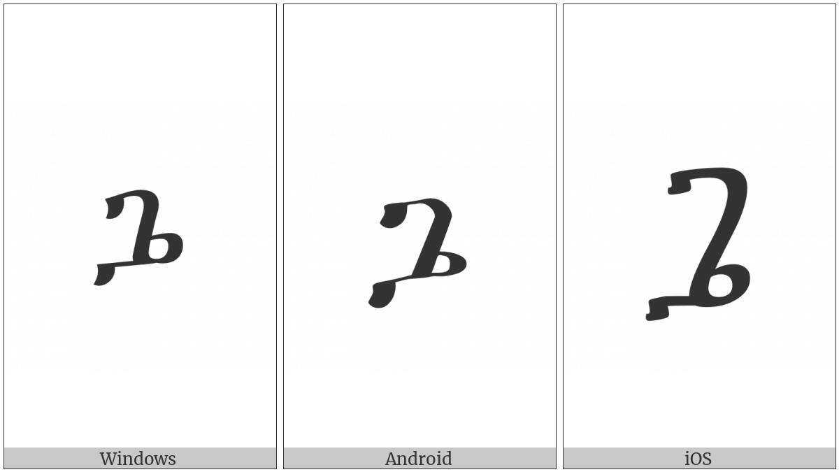 The image below shows how the “Ethiopic Syllable Gwee” symbol might look like on different operating systems. If the font in which this web site is displayed does not contain the symbol and there is no fallback font able to render it, you can use the image below to get an idea of what it should look like.