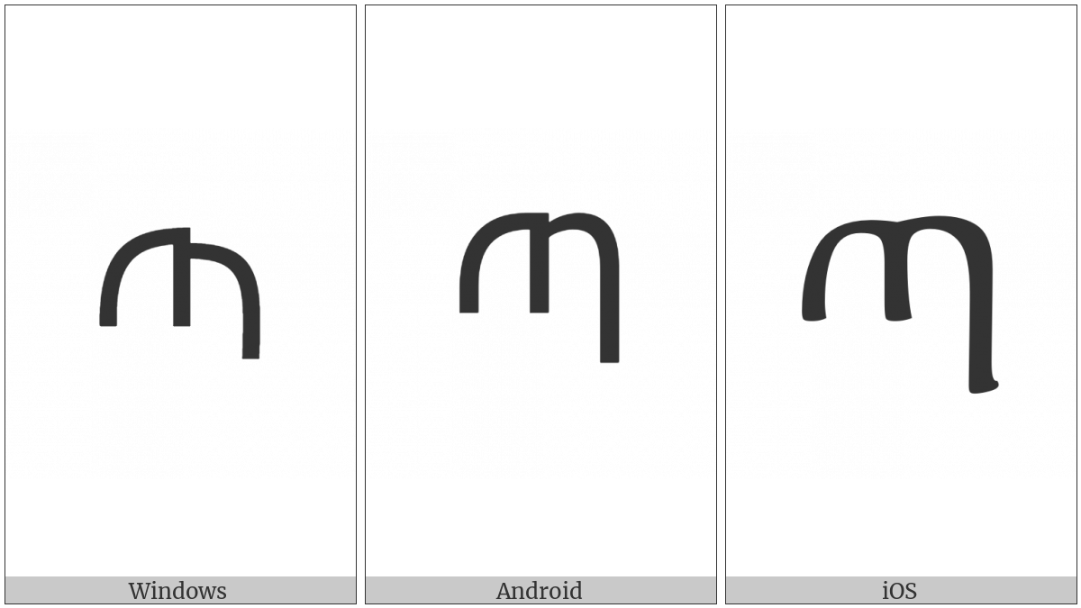 The image below shows how the “Ethiopic Syllable Thaa” symbol might look like on different operating systems. If the font in which this web site is displayed does not contain the symbol and there is no fallback font able to render it, you can use the image below to get an idea of what it should look like.