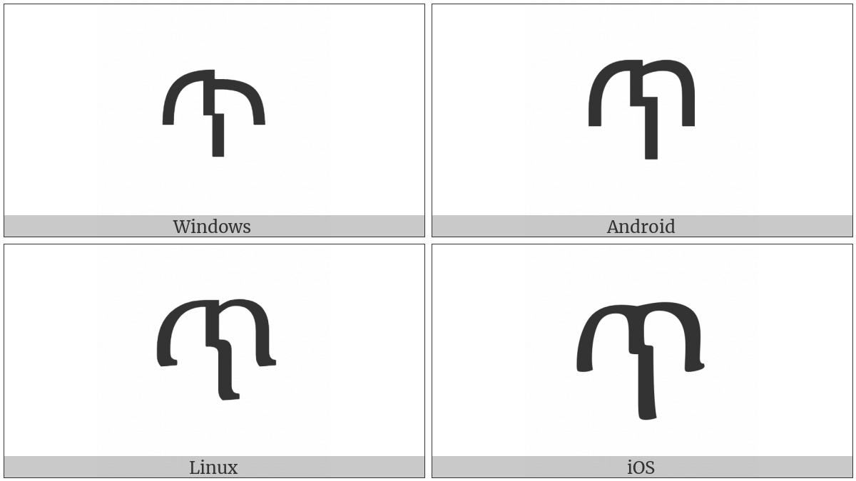 The image below shows how the “Ethiopic Syllable The” symbol might look like on different operating systems. If the font in which this web site is displayed does not contain the symbol and there is no fallback font able to render it, you can use the image below to get an idea of what it should look like.