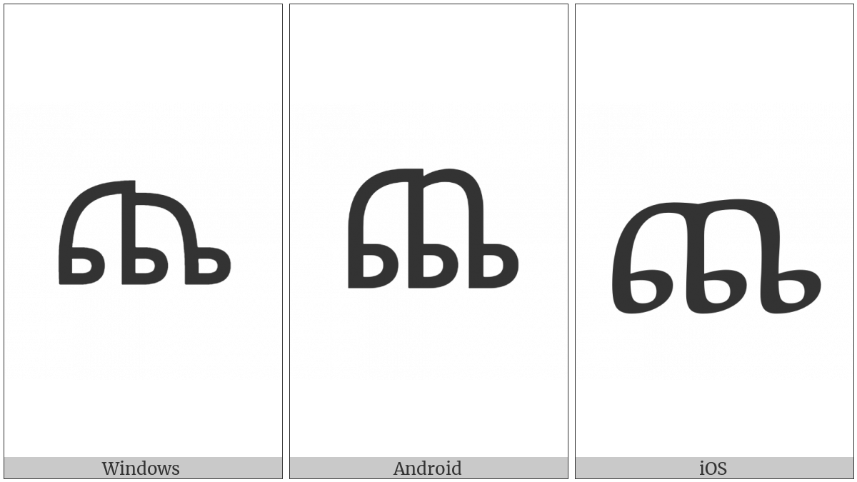 The image below shows how the “Ethiopic Syllable Cha” symbol might look like on different operating systems. If the font in which this web site is displayed does not contain the symbol and there is no fallback font able to render it, you can use the image below to get an idea of what it should look like.