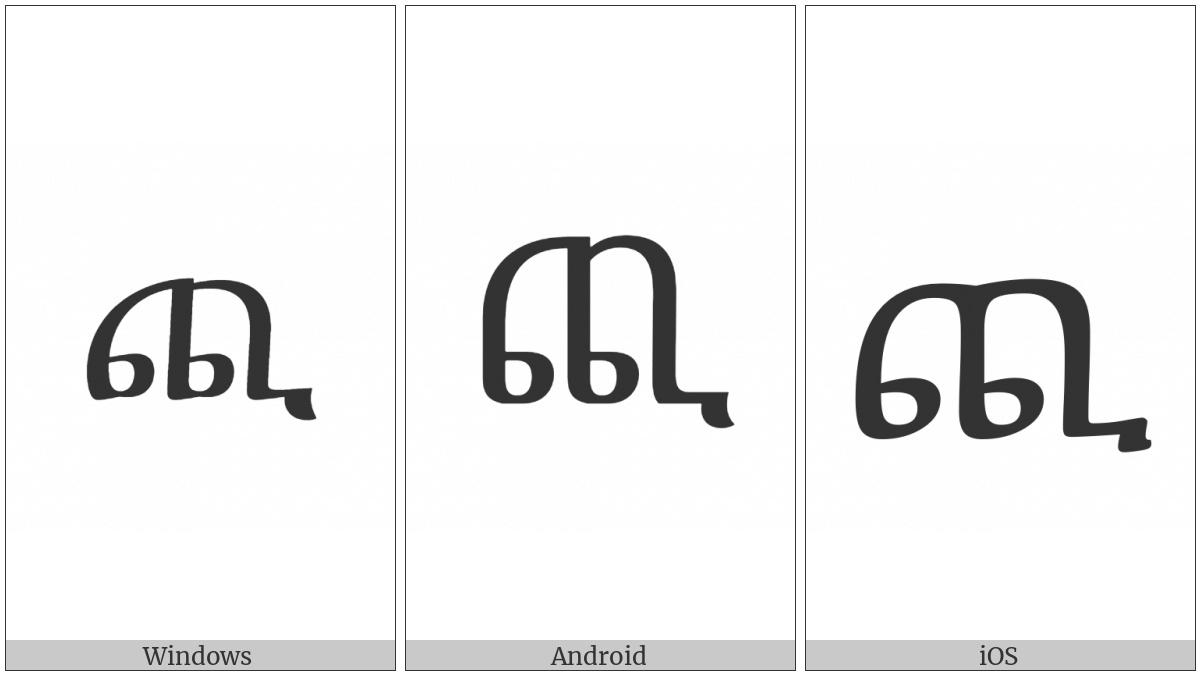The image below shows how the “Ethiopic Syllable Chi” symbol might look like on different operating systems. If the font in which this web site is displayed does not contain the symbol and there is no fallback font able to render it, you can use the image below to get an idea of what it should look like.