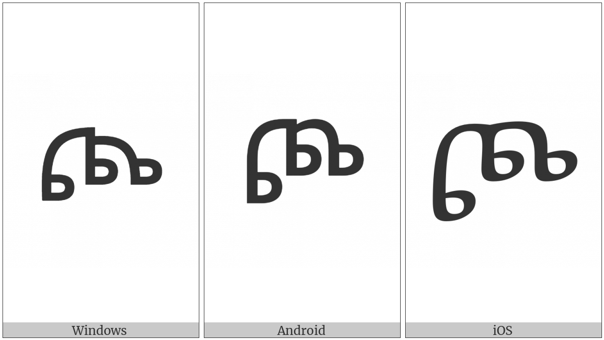 The image below shows how the “Ethiopic Syllable Cho” symbol might look like on different operating systems. If the font in which this web site is displayed does not contain the symbol and there is no fallback font able to render it, you can use the image below to get an idea of what it should look like.