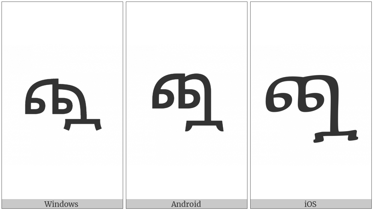 The image below shows how the “Ethiopic Syllable Chwa” symbol might look like on different operating systems. If the font in which this web site is displayed does not contain the symbol and there is no fallback font able to render it, you can use the image below to get an idea of what it should look like.