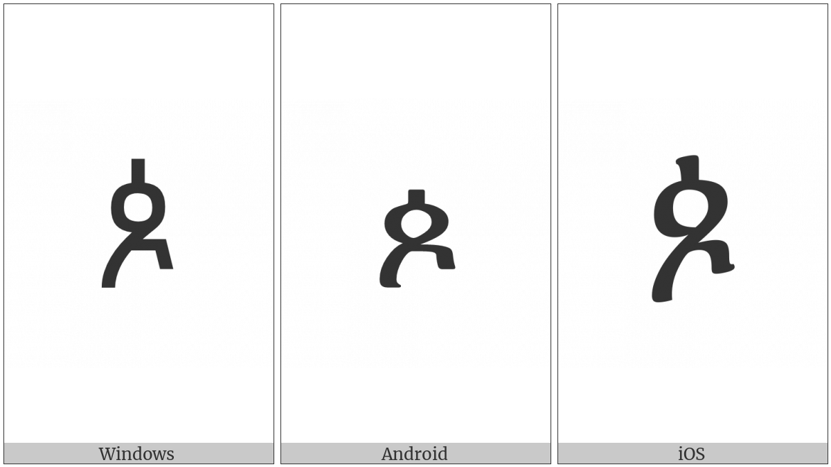 The image below shows how the “Ethiopic Syllable Pho” symbol might look like on different operating systems. If the font in which this web site is displayed does not contain the symbol and there is no fallback font able to render it, you can use the image below to get an idea of what it should look like.