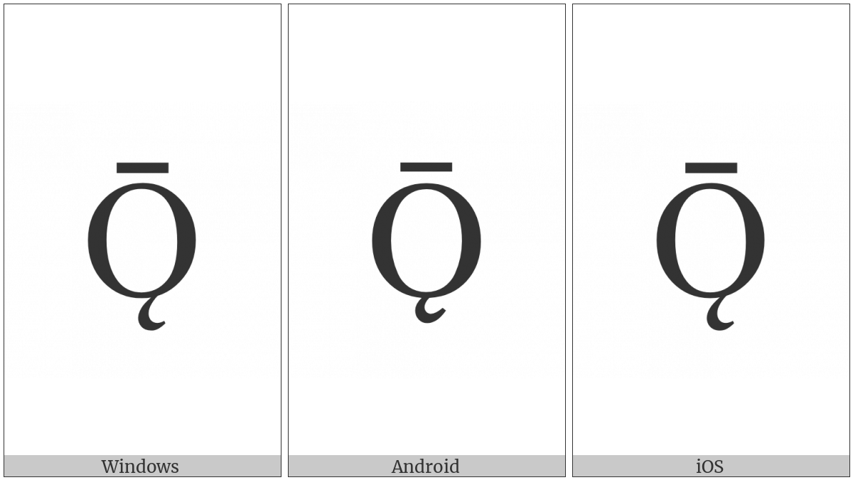 The image below shows how the “Latin Capital Letter O With Ogonek And Macron” symbol might look like on different operating systems. If the font in which this web site is displayed does not contain the symbol and there is no fallback font able to render it, you can use the image below to get an idea of what it should look like.