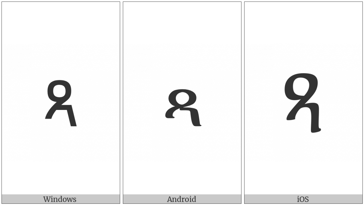 The image below shows how the “Ethiopic Syllable Tsaa” symbol might look like on different operating systems. If the font in which this web site is displayed does not contain the symbol and there is no fallback font able to render it, you can use the image below to get an idea of what it should look like.