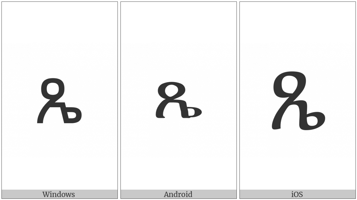 The image below shows how the “Ethiopic Syllable Tsee” symbol might look like on different operating systems. If the font in which this web site is displayed does not contain the symbol and there is no fallback font able to render it, you can use the image below to get an idea of what it should look like.