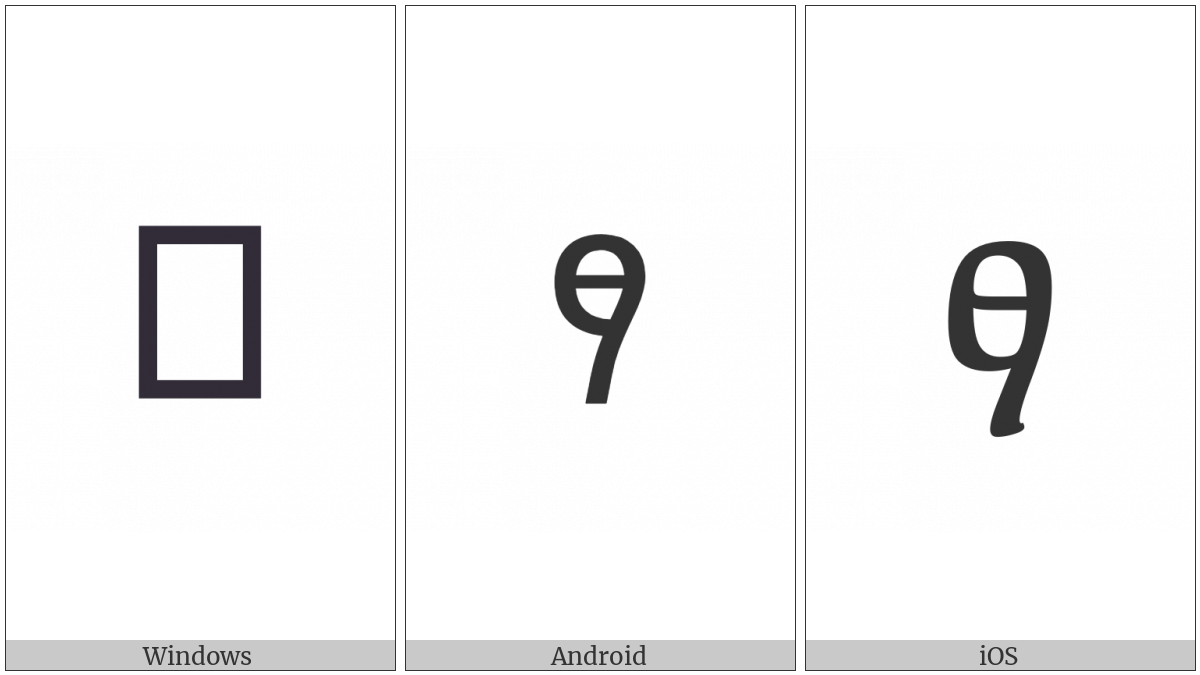 The image below shows how the “Ethiopic Syllable Tzaa” symbol might look like on different operating systems. If the font in which this web site is displayed does not contain the symbol and there is no fallback font able to render it, you can use the image below to get an idea of what it should look like.