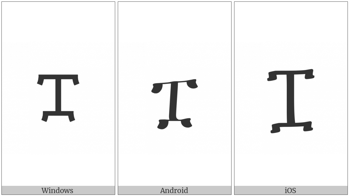 The image below shows how the “Ethiopic Syllable Pwa” symbol might look like on different operating systems. If the font in which this web site is displayed does not contain the symbol and there is no fallback font able to render it, you can use the image below to get an idea of what it should look like.