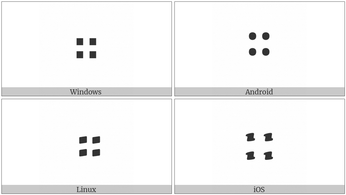 The image below shows how the “Ethiopic Full Stop” symbol might look like on different operating systems. If the font in which this web site is displayed does not contain the symbol and there is no fallback font able to render it, you can use the image below to get an idea of what it should look like.