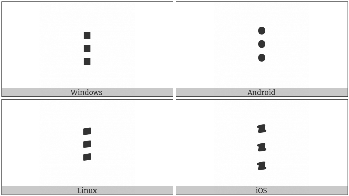 Please note that the image above is computer generated and not all images are curated, so certain errors might occur. Additionally, the operating systems change on occasions the default fonts they provide, so the character might not look the same on your operating system.